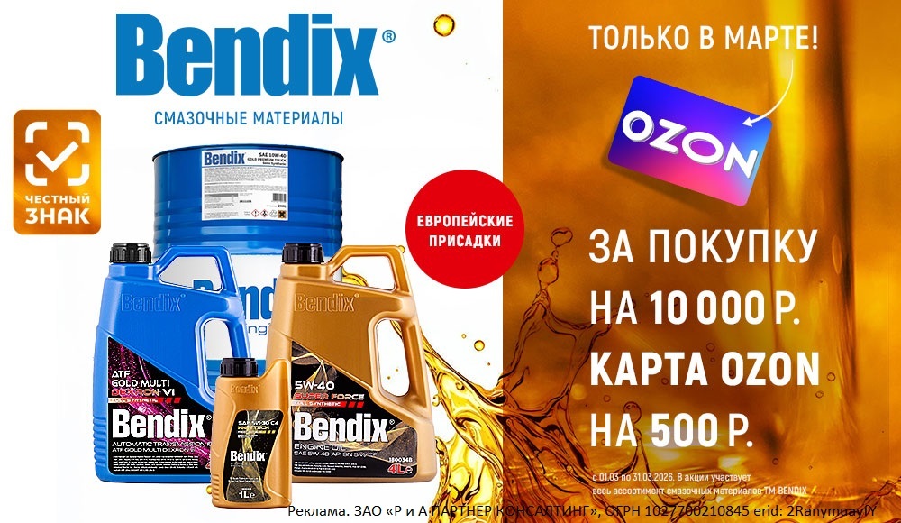 Внимание Акция! В марте, при покупке смазочных материалов Bendix — подарочная карта OZON